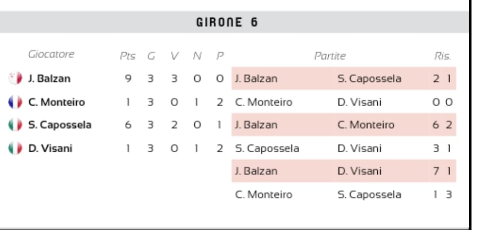 Buone notizie da Milano dove Marco Bonciani conquista un ottimo 10^ posto (ottavi di finale) nella competizione Veteran battuto solo dal finalista il belga Pascal Scheen, ottima finale anche per Davide Visani nella categoria Open Cadetti che dopo 8 partite ed una giornata estenuante si arrende a Billi di Ferrara. Giornata di alti e bassi per Barducci e Casati il primo eliminato agli ottavi cadetti in un derby fratricida con Visani il secondo al primo turno del Veteran Cadetti dopo essersi preso il lusso di battere nel girone l’inglese Bob Varney. Next stop nel 2023, ALE’ FIRENZE!